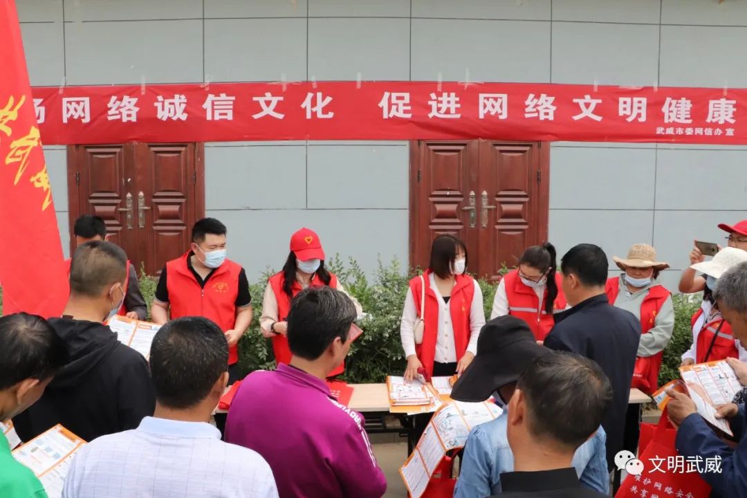 5月27日下午,武威市委网信办组织志愿者前往包抓共建的凉州区西大街雨亭巷社区,和社区工作人员一同开展了弘扬网络诚信文化 促进网络文明健康主题宣传活动。