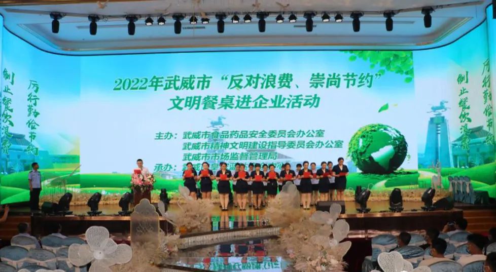 为贯彻落实习近平总书记关于坚决制止餐饮浪费行为重要批示精神,深入实施《中华人民共和国反食品浪费法》,大力弘扬勤俭节约的传统美德,坚决制止餐饮浪费行为,市市场监管局和市文明办到武威天漠蓝钻餐饮管理有限公司开展武威市2022年“反对浪费 崇尚节约”文明餐桌进企业活动。