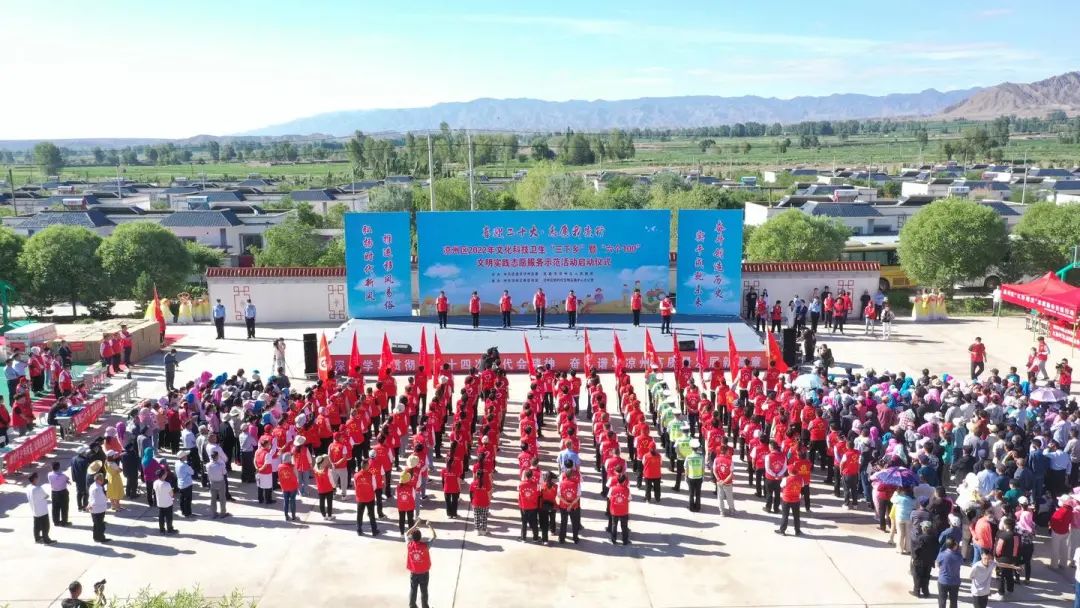 为深入学习宣传贯彻省第十四次党代会精神,持续营造喜迎党的二十大的浓厚氛围,充分发挥“三下乡”活动品牌效应,进一步拓展新时代文明实践志愿服务活动,不断丰富农村精神文化生活,激发群众投身乡村建设行动、推进乡村振兴的积极性、主动性、创造性,6月22日,凉州区2022年文化科技卫生“三下乡”暨“六个100”文明实践志愿服务示范活动在金山镇移民安置社区广场举行启动仪式。