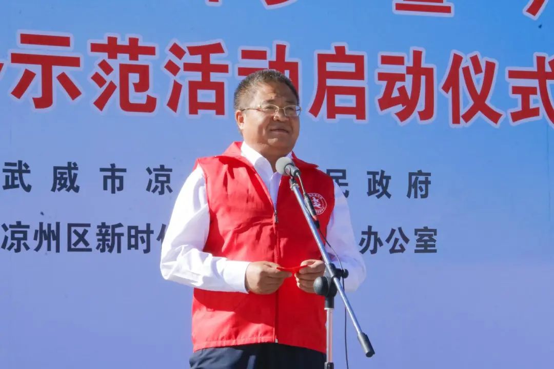 李万岳宣布凉州区2022年文化科技卫生“三下乡”暨“六个100”文明实践志愿服务活动启动。