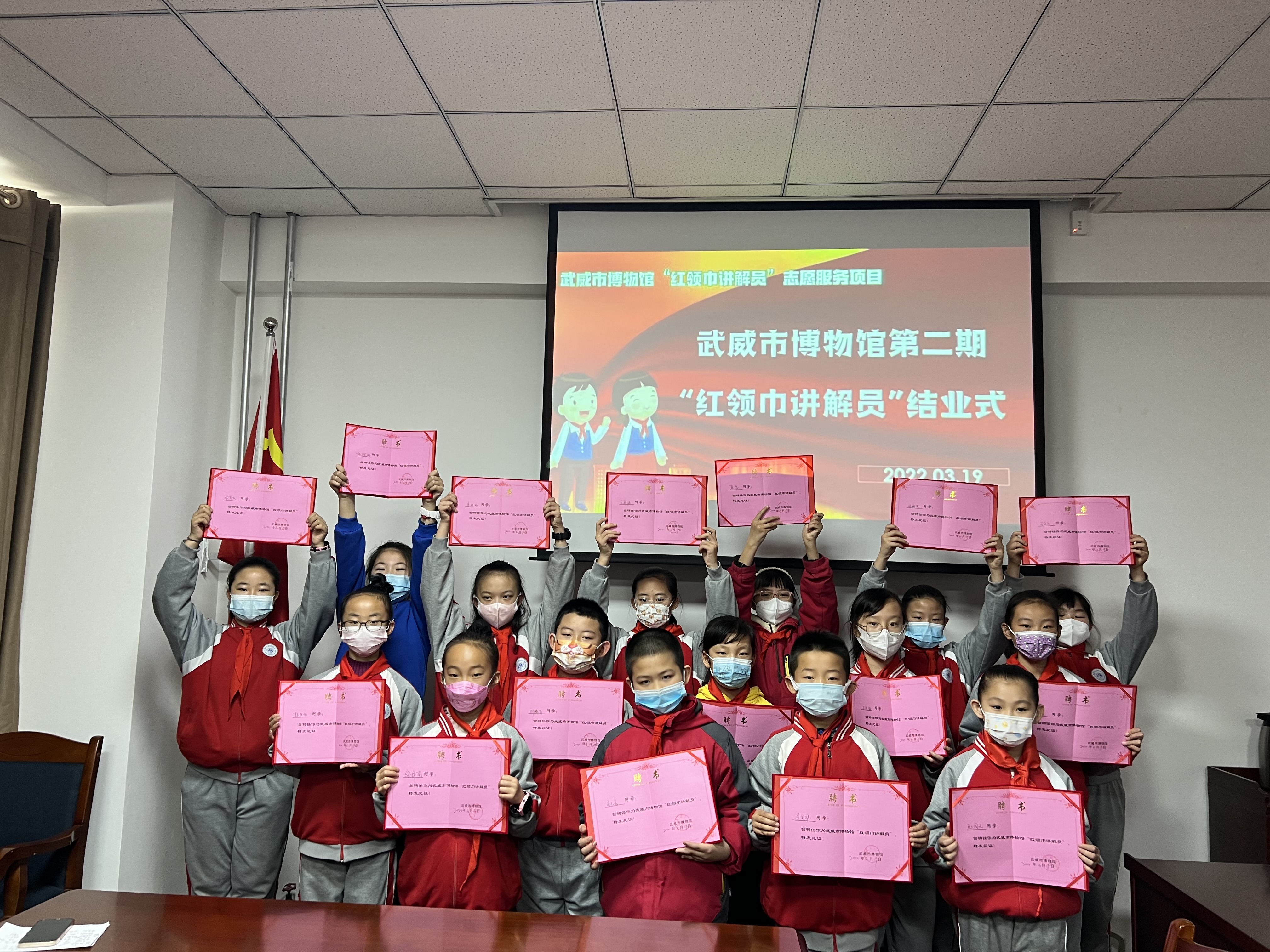 “红领巾讲解员”志愿服务项目,是武威市博物馆自2019年发起实施并倾力打造的公共服务项目,是专门针对青少年搭建的社会实践“第二课堂”。项目以“我和博物馆共成长”为主题,依托武威市丰富的文物资源和深厚的历史文化底蕴,引领青少年传承红色基因,弘扬中华优秀传统文化,以实际行动讲好新时代武威故事。这些“红领巾讲解员”最大的13岁,最小的7岁,活泼可爱、热情洋溢、默默奉献,每周按时来到博物馆开展志愿服务,活跃在宣教一线,为全国各地的观众提供义务咨询、导览、讲解服务,参与全国文明城市和文化旅游名市建设,成为我馆一道靓丽的风景线。