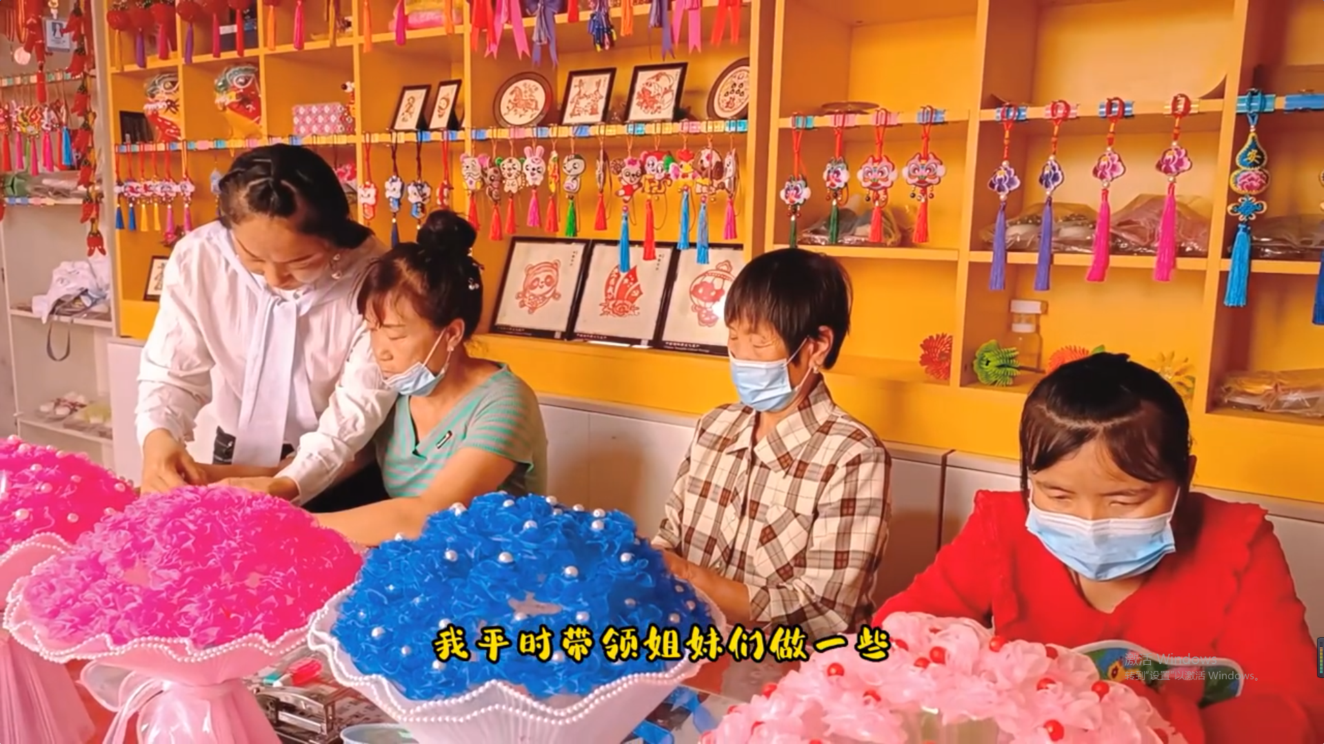 几年前,范德秀还是一名普通的家庭主妇,每天和柴米油盐、锅碗瓢勺打交道。但是她决定改写人生,开始干事创业,一直以来就对手工作品有着浓厚兴趣的她,在2018年11月申请注册了“古浪巧手非物质文化遗产服务有限公司”。公司刚起步时,销路打不开,她就经常自己开车穿梭在各种场地展示展览,积极推广手工制品,争取订单、开拓市场,真可谓经历了千辛万苦。但她在心里一直鼓励着自己:只能进,不能退,坚持就是胜利!功夫不负有心人,经过她的不懈努力和精心经营,加上有关部门的大力支持,公司订单越来越多,效益也越来越好了。