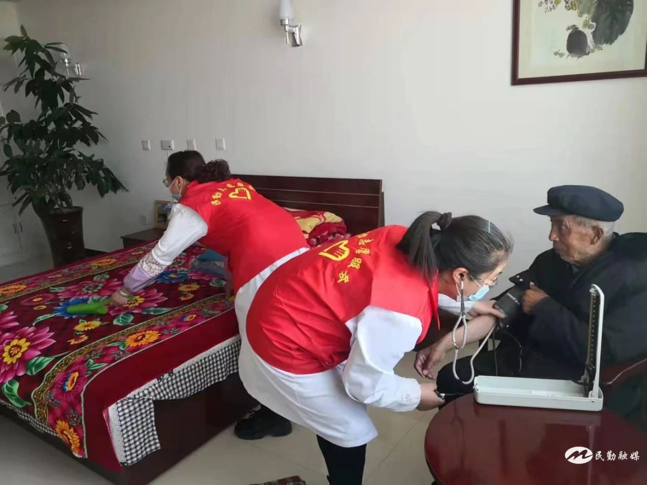 志愿者为老人进行义诊健康检查