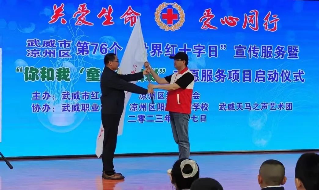 5月7日下午,市、区红十字会在凉州区阳光实验学校举行武威市第76个“世界红十字日”宣传服务暨“你和我‘童’样精彩”志愿服务项目启动仪式,旨在进一步贯彻《中华人民共和国红十字会法》,弘扬“人道、博爱、奉献”的红十字精神,凝聚更多的社会力量关心和支持红十字事业。