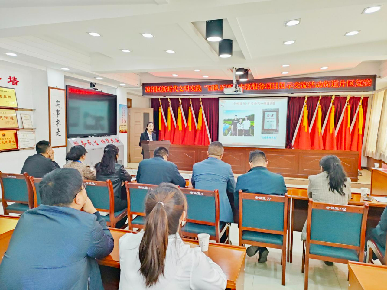 日前,凉州区新时代文明实践“百队百项”志愿服务项目展示交流活动城区片区复赛有序进行,活动现场,各志愿服务项目讲解人以现场解说、图文展示等形式,分享了特色项目的志愿者组织、项目内容、项目成效和推广计划,让大家更加生动直观地感受到了志愿服务的魅力,有效扩大了文明实践的影响力,领唱了文明实践的主旋律。