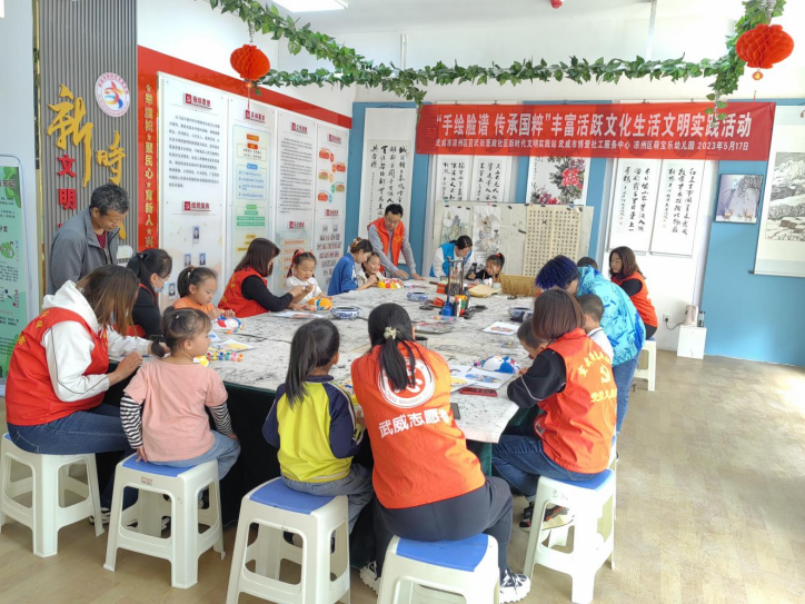 5月17日,宣武街惠政社区联合萌宝乐幼儿园、博爱社工服务中心在社区新时代文明实践站开展“手绘脸谱,传承国粹”丰富文化生活的文明实践活动。旨在弘扬中华传统文化、传承国粹艺术,引导社区孩子们感受中国传统文化的博大精深与无限魅力,增强民族自信心和自豪感,让社区孩子们了解京剧常识、绘制脸谱,零距离感受国粹之美,并在实践中收获无限乐趣。