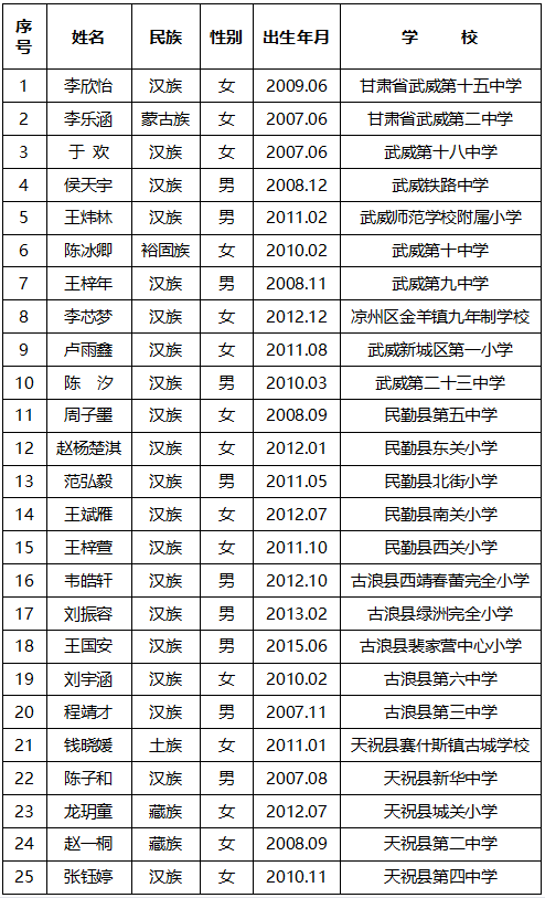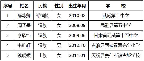 “新时代甘肃好少年”拟推荐人选