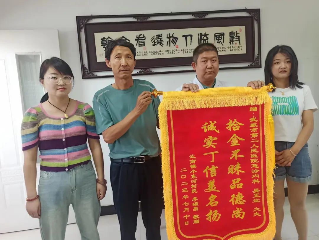 “你们一定要表扬这位好医生,是他让我的一万元现金失而复得。” 7月10日,在武威市第二人民医院,凉州区武南镇村民李硕昌拿着锦旗激动地说。