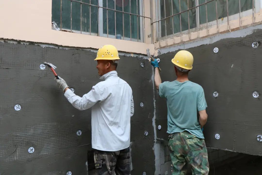 在火车站街道惠民社区皇苑小区,施工人员正在有5层楼高的升降机上作业。他们手脚麻利,给单薄的外墙“穿”上了厚厚的“外衣”,这个冬天居民不用担心受冻了。