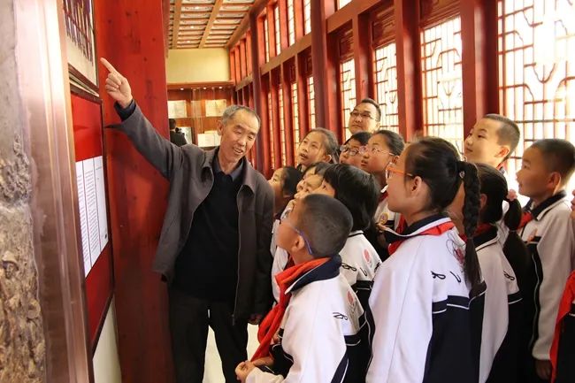郭万刚给少先队员作讲解