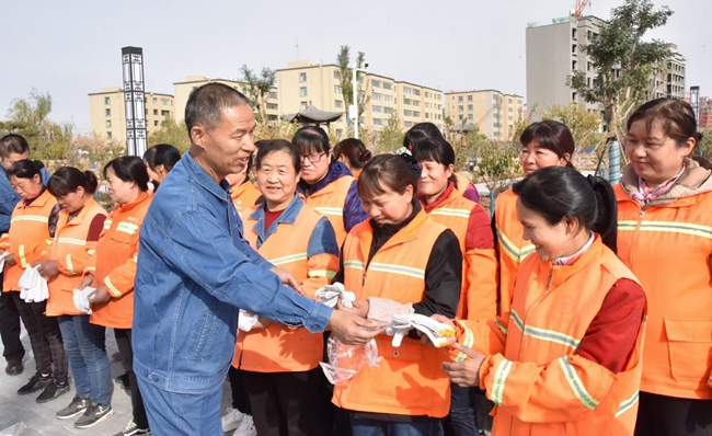 杜志虎为环卫工人赠送手套