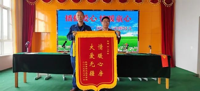 民勤县特殊学校负责人为杜志虎送锦旗