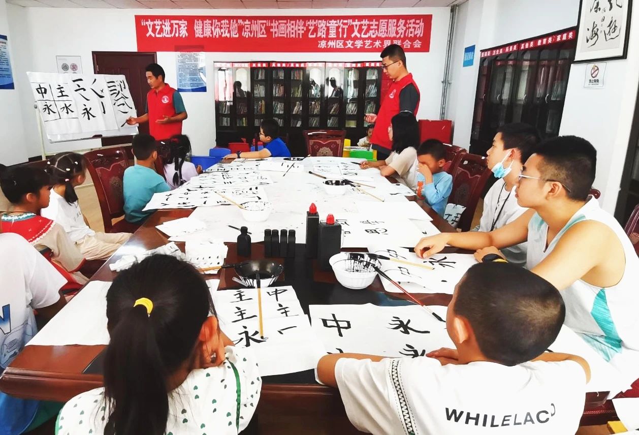 为大力弘扬奉献、友爱、互助、进步的志愿服务精神,引导广大文艺工作者自觉投身志愿服务事业,不断满足基层群众精神文化需求,8月18日,凉州区文联组织文艺志愿者分别深入东大街南苑社区、西大街靶场社区、西关街九社区、宣武街宋家园社区,开展了以书画相伴·‘为主题的文艺志愿服务活动。