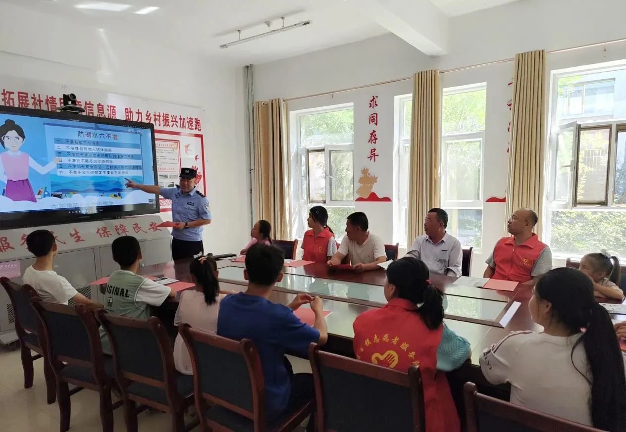 开展安全讲座,增强安全意识。薛百镇新时代文明实践所联合镇派出所组织开展发放一张防溺水倡议书、开设一堂防溺水宣传课堂和观看一段防溺水宣传视频等“三个一”“珍爱生命 预防溺水”宣传志愿服务活动。活动以播放视频、互动问答等方式普及文明交通、防拐防骗、火灾预防、安全用电、暑期户外活动、防溺水等方面的危险预防和自救知识,在全镇形成防溺水宣传浓厚氛围,撑起未成年人防溺水“安全伞”。