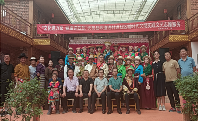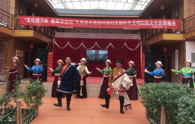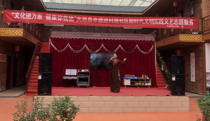 活动现场,台上演员表演细腻洒脱,台下观众掌声、喝彩声起伏不断。演出包含了华锐藏族民歌、华锐则柔、天祝土族安召、天祝土族民歌、锅庄舞等富有地域特色的文艺节目。活动用文艺形式展示了文化工作者弘扬爱国精神、民族精神,扎根人民生活,用跟上时代的精品力作开拓文艺新境界,谱写文艺新篇章的不懈努力。今年以来,天祝县已先后举办5次“文化进万家健康你我他”天祝县非遗进村进社区新时代文明实践文艺志愿服务活动,覆盖农牧民群众1000余人次。通过文艺志愿活动,丰富了基层的文化生活,满足了老百姓日益增长的精神文化需求,培育和践行了社会主义核心价值观。