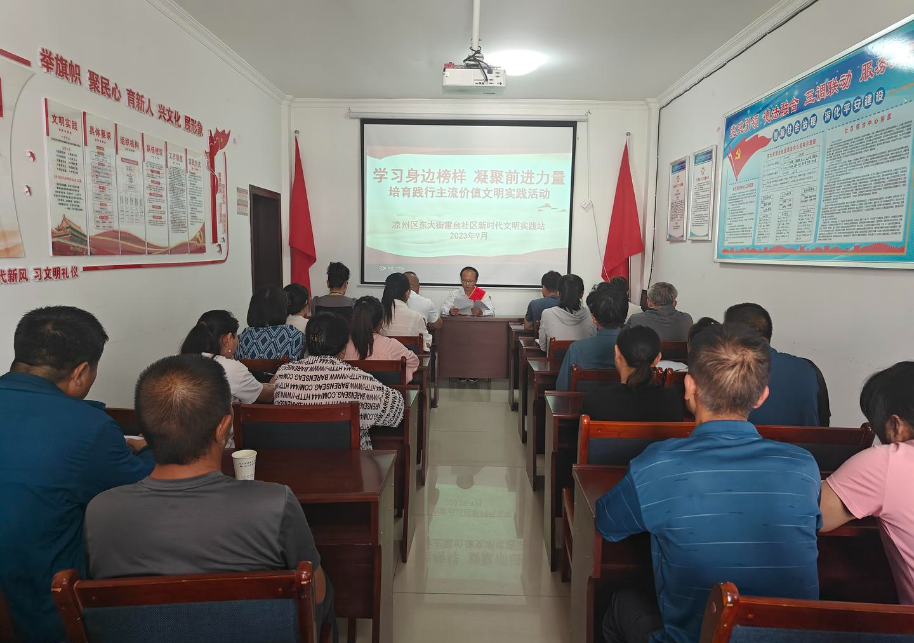 近日,凉州区东大街雷台社区开展学习身边榜样 凝聚前进力量培育践行主流价值文明实践活动。