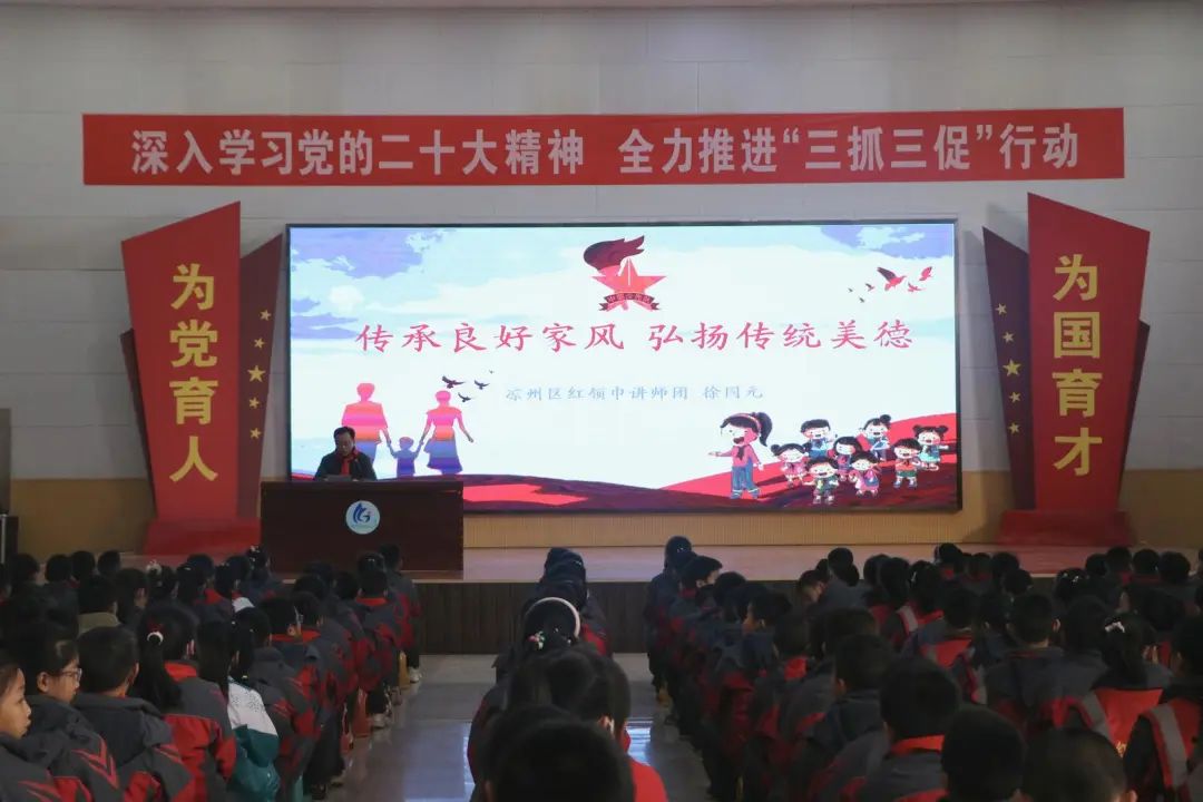 宣讲会上,凉州区“红领巾巡讲团”成员、凉州区发展街小学少先队大队辅导员徐国元以“传承良好家风、弘扬传统美德”为主题,通过引人入胜的短片、发人深省的家风故事,引导广大少先队员传承良好家风,挖掘中华优秀传统文化,弘扬传统美德,传播向上向善的正能量。