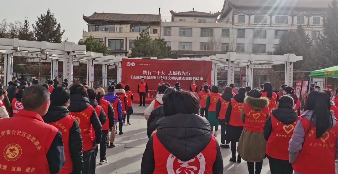 12月5日下午,在第38个国际志愿者日之际,市、区文明实践办“12·5”国际志愿者日《志愿服务条例》进社区文明实践志愿服务活动在凉州区文庙广场开展,活动旨在深入学习宣传贯彻《志愿服务条例》,号召更多群众踊跃投身志愿服务,营造“我为人人,人人为我”的良好社会氛围。