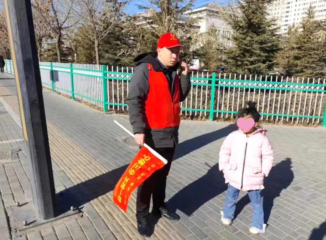 2024年1月6日中午,武威市自然资源局志愿者马新在开展文明交通劝导志愿服务活动中,遇到一名走失儿童。面对突发情况,他积极采取行动,帮助小孩寻找家人。