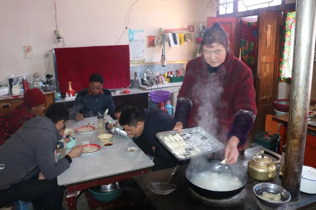 随着饺子逐渐增多,煮饺子的任务也提上了日程。大锅里的水咕嘟咕嘟地冒着泡,仿佛在焦急地等待饺子的到来。当朱金梅把第一个饺子轻轻滑入水中时,水面立刻泛起一圈圈涟漪。