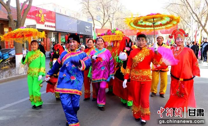 民勤县社火展演精彩纷呈,演员们精神抖擞为观众献艺。