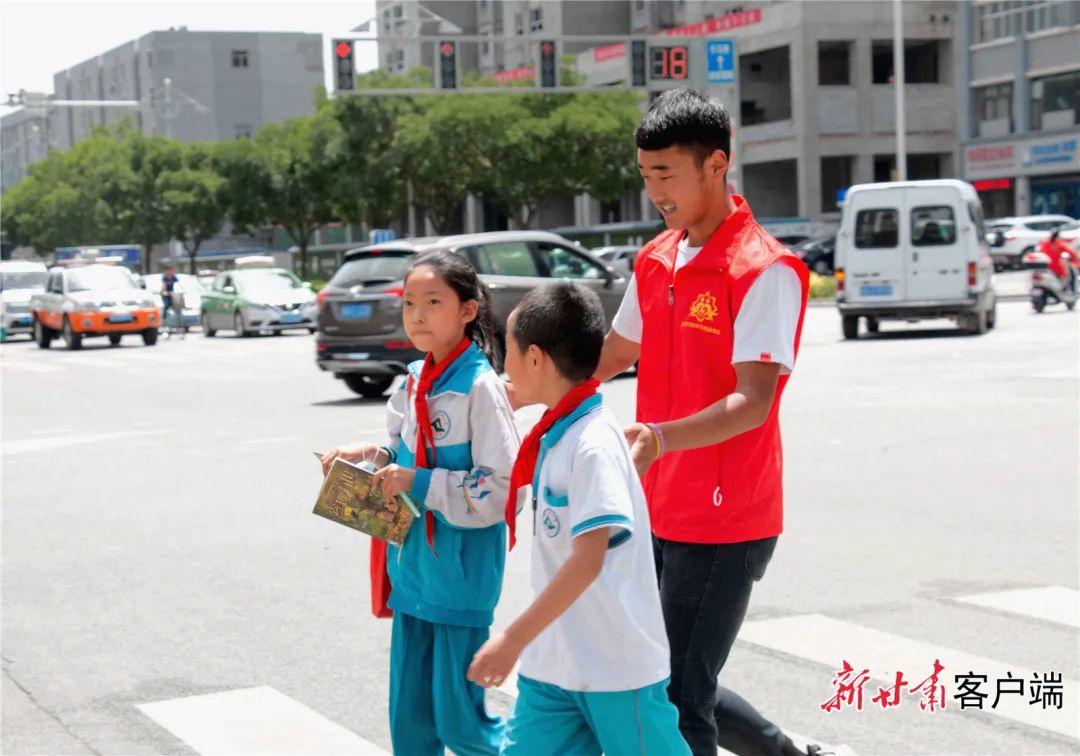 武威市志愿者护送小学生过斑马线。(资料图)