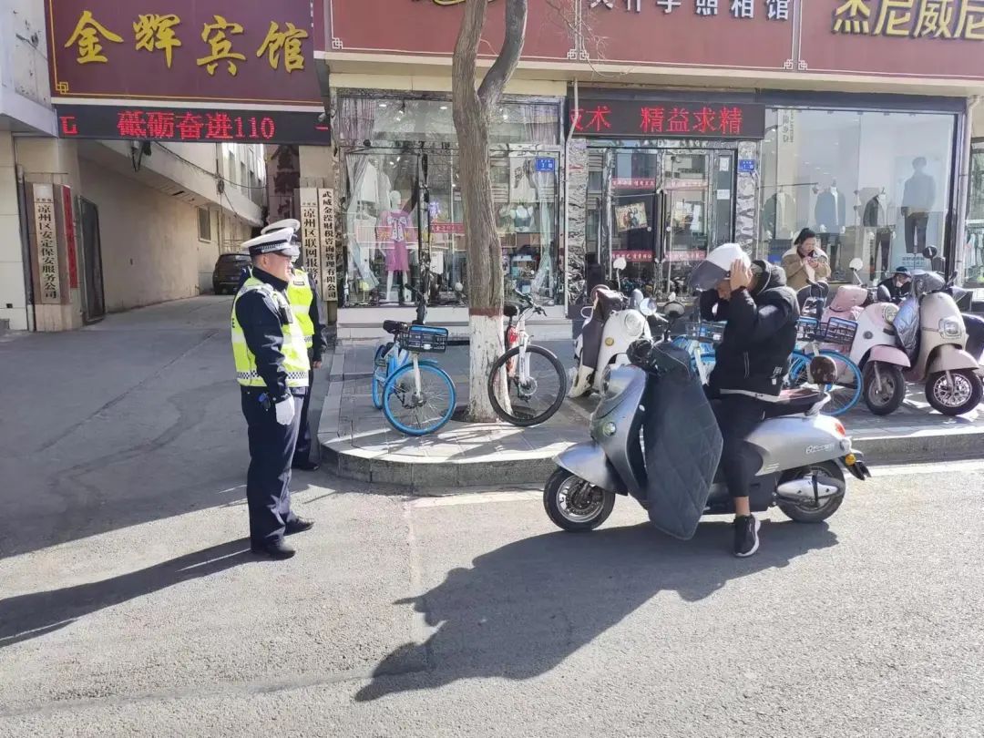凉州分局交警大队城关中队辅警马玉梅:我们凉州公安交警在做好疏堵保畅的同时,持续开展电动车违法行为专项整治,及时清理车辆乱停乱放,为群众的出行营造良好的交通环境。