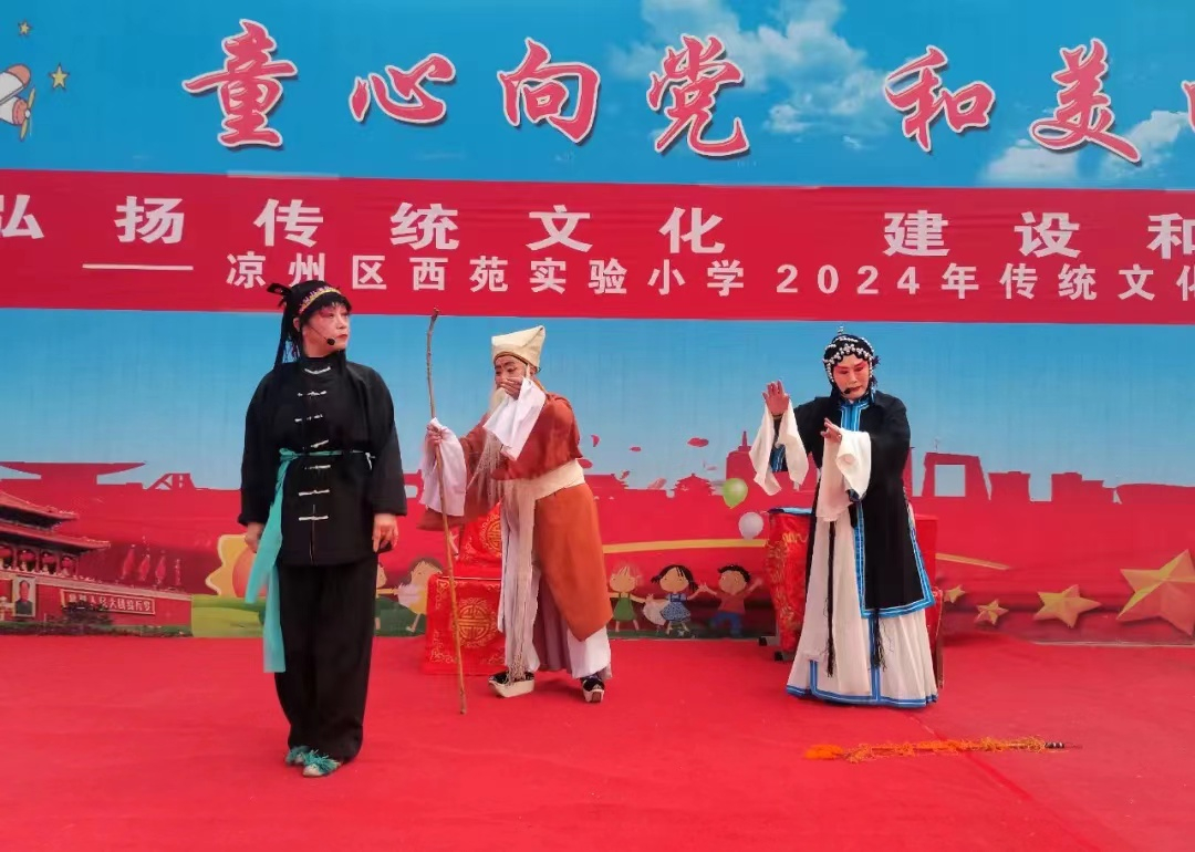 戏曲进校园。4月23日,为扎实推进强国复兴有我 我为群众办实事实践活动,进一步弘扬中华优秀文化,传承戏曲文化,培养学生兴趣爱好,武威市戏剧家协会组织协会会员走进凉州区西苑实验小学开展弘扬传统文化 共建和美校园”“戏曲进校园活动。以秦腔折子戏《三娘教子》开场、《川剧变脸》、眉户剧《苏若兰》、舞蹈《西凉乐舞》、戏曲《梨园华彩》、戏歌《梨花颂》等节目轮番上阵,市戏剧家协会的老师们用清脆铿锵的梨园雅韵为同学们带来了一场精彩的视听盛宴。