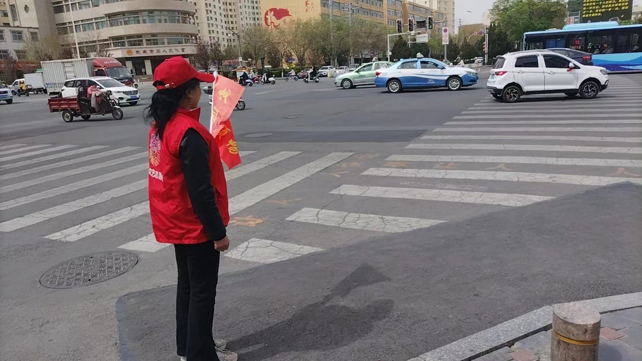 4月26日,为维护城市交通秩序,帮助市民朋友养成良好出行习惯,安排职工在8:009:00、11:3012:30、14:0015:00、17:3018:30上下班高峰时段,在西郊公园东北角参加文明交通劝导志愿服务活动,对十字路口周边乱停乱放的车辆进行整治,有效引导行人、摩托车和电动车驾乘人员遵守交通规则。