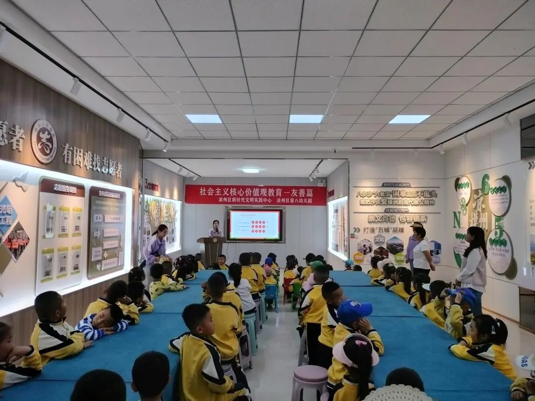 核心价值塑心正品,立德树人培根铸魂。5月9日上午,凉州区新时代文明实践中心以友善为主题,开展社会主义核心价值观教育活动,来自凉州区第八幼儿园的师生及家长,通过聆听、交流、互动、实践等方式,一起学习社会主义核心价值观,培育践行文明新风尚。