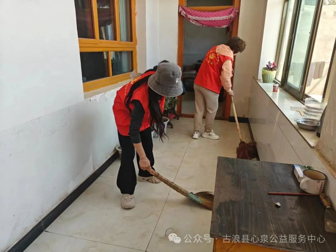 随后,志愿者们前往海子滩镇元新村等处,分别入户走访看望了5个特困家庭,将地方特色传统美食——油饼卷糕和脸盆、毛巾等慰问品送到他们手中;还为8名留守儿童分发了每套价值近200元的图书、文具和牛仔裤等爱心礼物;每到一户,志愿者们都会与他们亲切交谈,并送上节日的祝福,为老人们打扫卫生,使他们的生活环境更加洁净舒适。