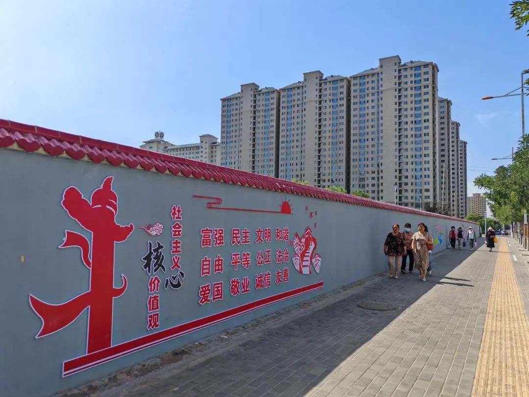 文明,是一座城市的幸福底色,也是一座城市的内在气质。近年来,武威市大力弘扬和践行社会主义核心价值观,通过打造文化墙等方式,积极倡导文明新风尚,提升城市的文化底蕴,展现大美凉州风貌。今年5月至6月,凉州区宣武街联合包抓共建单位在辖区益民巷原武威泰康制药厂西侧外墙、杏林路东段两侧建设宣传文化墙体,改善街区环境的同时,进一步提升城市文化品位,把魅力凉州特色文化及文明新风送入群众眼中、融入群众生活,成为城市文化的“代言人”和“传播者”。