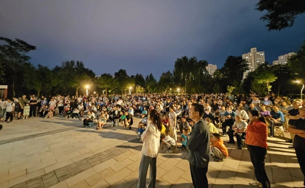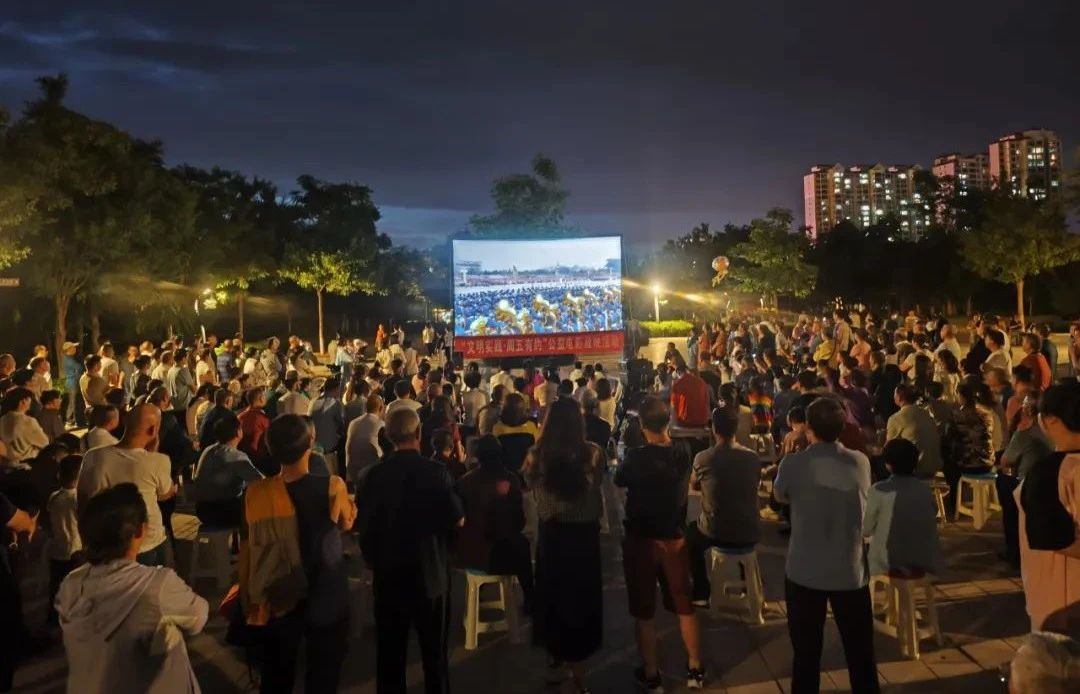 随着夜幕降临,西郊公园中心广场人头攒动,居民纷沓而至,小朋友席地而坐,等待电影上映。一台放映机、一块幕布、一个放映员,把经典红色电影送到群众身边,将理想信念教育融进群众喜闻乐见的文化活动中。现场群众纷纷表示,虽然现在通过手机、电视等观影特别便捷,但此次活动又勾起了他们儿时的回忆,让他们想起了小时候跑十几里路追着放映队看露天电影的画面,希望这样的活动能够越来越多。