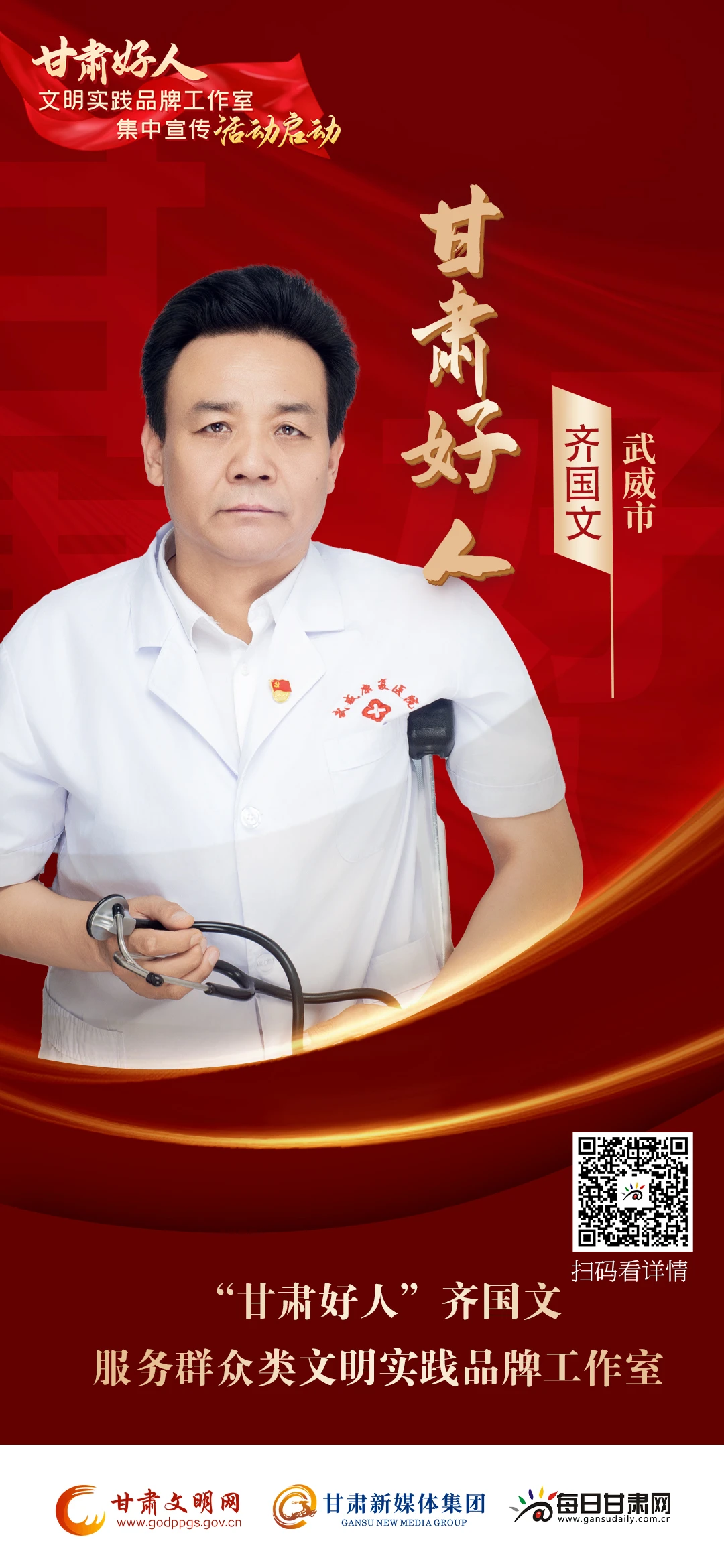 今天,让我们走进“甘肃好人”齐国文服务群众类文明实践品牌工作室,一同感受他用爱和责任书写的“医者仁心”。