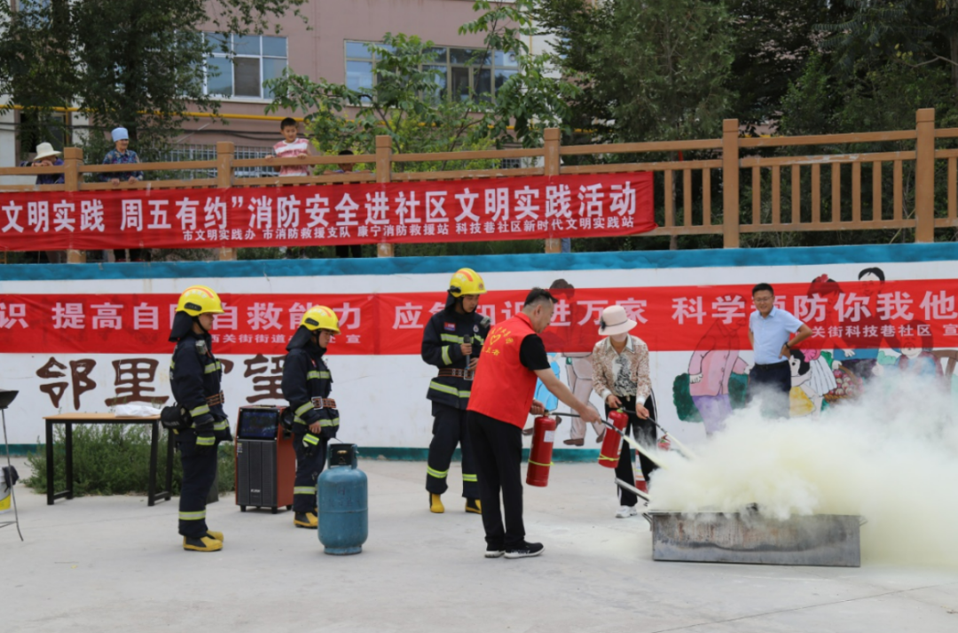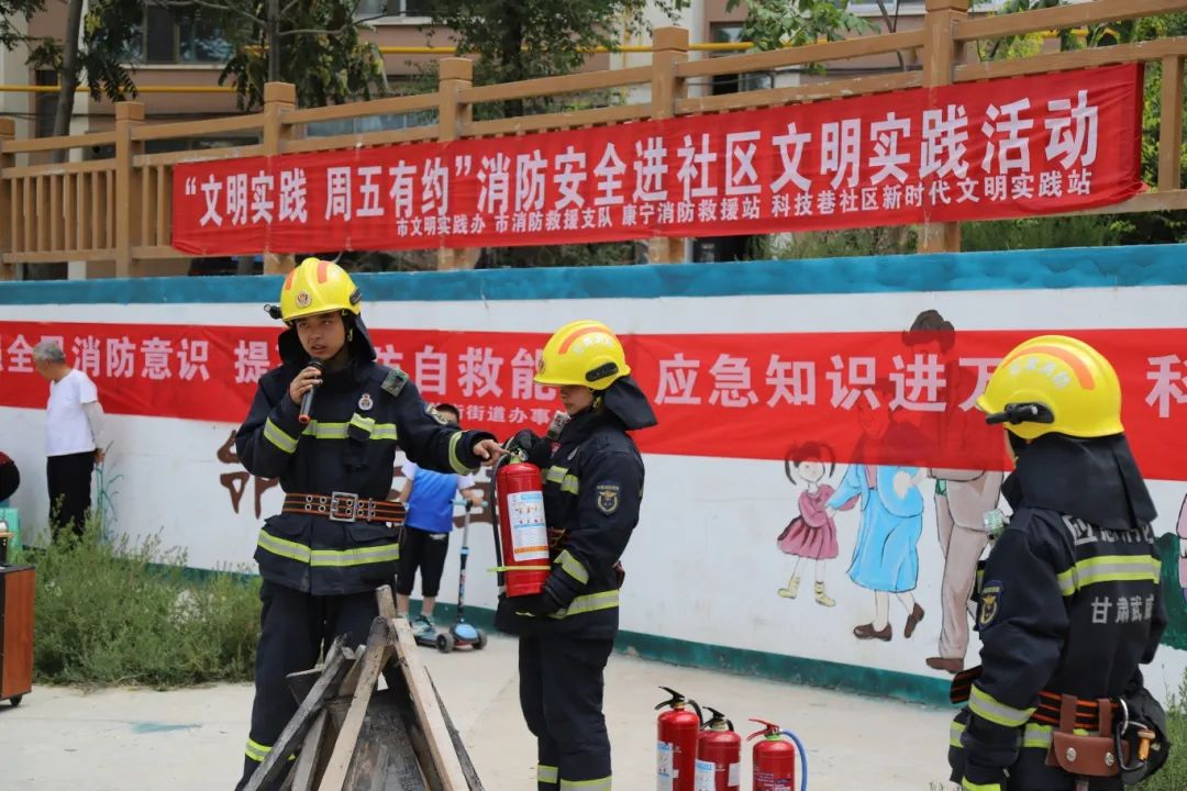 为进一步提高社区居民消防安全意识,增强广大群众应急逃生和自防自救能力,8月9日下午,市文明实践办、市消防救援支队、凉州区康宁消防救援站在凉州区科技巷社区联合举办“文明实践 周五有约”消防安全进社区文明实践活动。