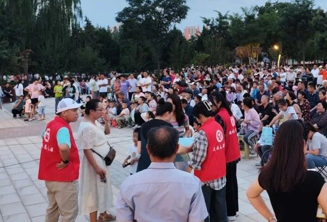 夜幕降临,光影交错,西郊公园中心广场人头攒动,市民群众聚拢而来,等待着“露天影院”的开启。