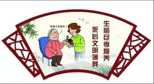 白事简办:祭之丰不如养之厚,生前让老人有所养、有所乐,死后丧事简办。禁止土葬,禁止骨灰装棺葬,不大操大办,不使用纸马、纸钱、纸轿等封建迷信用品。提倡红白理事会全程办理丧事,提倡丧事简办,提倡用环保、生态、洁净的方式悼念逝者。