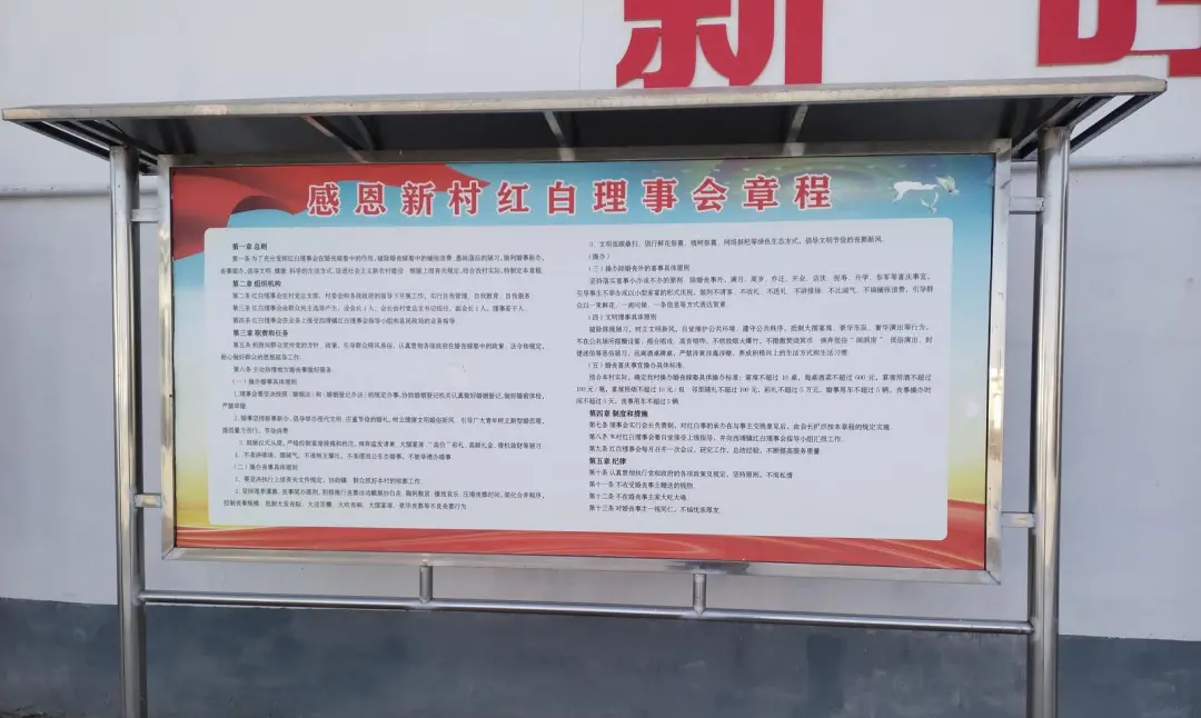 在西靖镇感恩新村,依托新时代文明实践广场,围绕“红事新办、白事简办”主题,通过主题宣讲、定期举行会议等形式,在全村广泛深入开展“孝老敬亲、厚养薄葬、文明婚俗”活动。同时,感恩新村红白理事会通过微信群、张贴标语、发放倡议书等“线上+线下”相结合的方式,广泛开展移风易俗宣传,志愿者们走访入户,主动上门宣传红白事相关规定,不断让“红事新办、白事简办”的理念深入人心。
