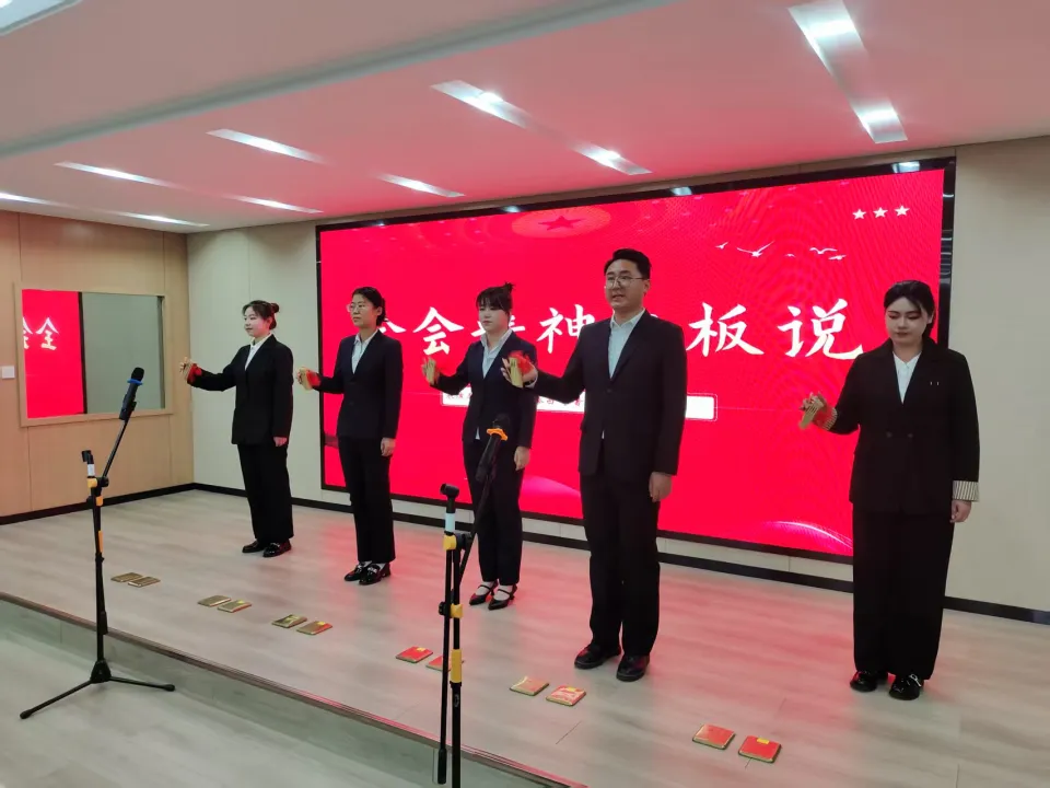 活动现场,来自7个社区的优秀宣讲员逐一登台,围绕深入学习贯彻党的二十届三中全会精神、生态保护、新时代青年如何在法治引领下坚定信念,“思政课堂”如何在小区楼院里焕发新的生机与活力等不同方面,用鲜活的事例、生动的语言,将理论讲透讲实,将故事讲细讲真,激发了全场观众的共鸣。其中,三句半表演《新征程·青年说》充满趣味与智慧,快板表演《全会精神快板说》激情飞扬、旋律明快,将活动推向高潮,为宣讲增添活力和趣味。