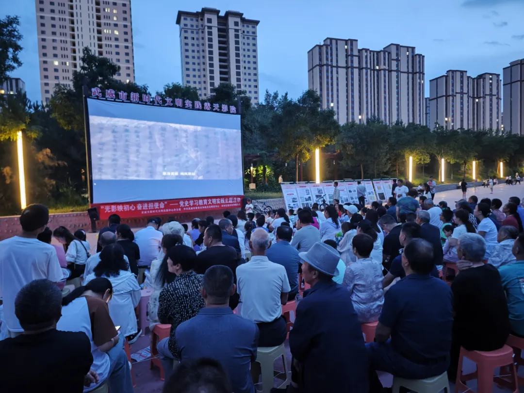 6月28日晚,在“七一”建党节来临之际,由市新时代文明实践中心办公室、市委党史和地方志研究中心、凉州区宣武街海藏社区主办的“光影映初心 奋进担使命”党史学习教育文明实践主题活动,在凉州区海藏湿地公园武威市新时代文明实践露天影院成功举办,吸引了数百名市民群众、党员干部及学生踊跃参与,以光影为媒、以知识为桥,共赴一场沉浸式红色文化之旅。