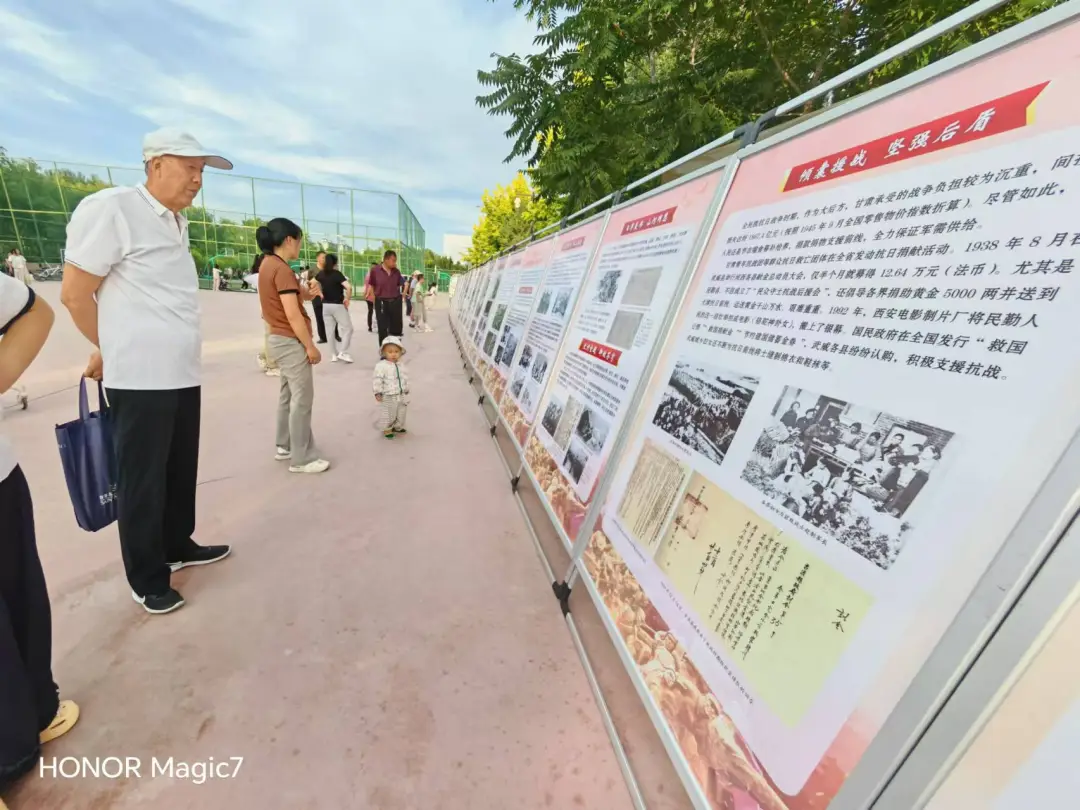 活动中,以“纪念抗战胜利80周年”为主题的党史展板吸引了广大群众的目光。讲解员以详实的史料为依托,从“九一八事变”的屈辱开端讲起,深入阐述全民族抗战爆发的历史背景,生动讲述中国军民浴血奋战的英勇事迹。展板上珍贵的历史照片、文献资料,让参与者深刻感受到中国人民在抗日战争中表现出的不屈不挠的民族精神,以及抗战胜利对中华民族伟大复兴的重大意义。现场群众或凝神聆听,或仔细观看展板,在一个个可歌可泣的抗战故事中,沉浸式体悟那段艰苦卓绝的峥嵘岁月。