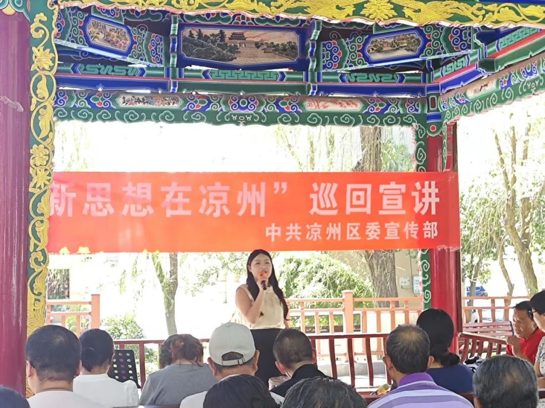 据悉,此次“新思想在凉州”巡回宣讲系列活动将持续至8月底,通过“宣讲+故事”“宣讲+互动”等方式,深入镇(村)、街道(社区)、企业、机关、场馆等开展对象化、分众化、互动化宣讲,通过一个个鲜活案例、暖心故事,宣传宣讲凉州区在生态环境治理、生态产业发展上的生动实践,将党的创新理论转化为群众听得懂、记得住的“身边事”,让大家深刻认识到新思想的理论深度和实践温度,激励着广大干部群众立足岗位,将新思想转化为行动自觉,为推动全区高质量发展、谱写中国式现代化凉州篇章贡献力量。