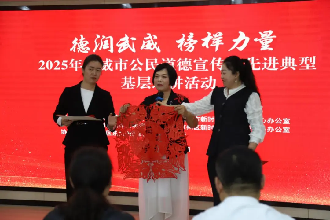 9月19日,由武威市精神文明建设办公室、武威市新时代文明实践中心办公室等单位主办的德润武威·榜样力量2025年公民道德宣传日先进典型基层巡讲活动,走进凉州区东大街南苑社区新时代文明实践站,活动采取榜样故事+非遗剪纸 的沉浸式形式,让道德力量可视可感、深入人心。